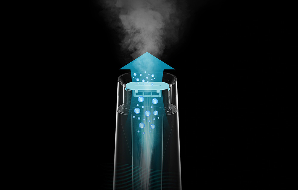 Two humidification systems allow you to set the humidity level manually or automatically, which adjusts the mode to the current room air condition.