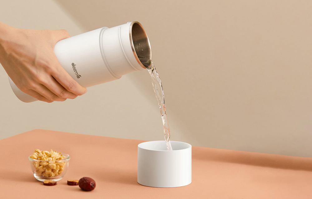 La Deerma DR050 est un appareil polyvalent qui fait office de bouilloire portable et de thermos. Elle permet non seulement de faire bouillir de l’eau, mais aussi de maintenir sa température grâce à sa fonction thermos. Ce produit garantit une utilisation en toute sécurité et est fabriqué à partir de matériaux de haute qualité comme l’acier inoxydable 304. Sa capacité est de 350 ml. Le couvercle thermos peut également servir de tasse. L’appareil est léger et suffisamment pratique pour vous accompagner presque partout : à la maison, au travail ou en voyage.