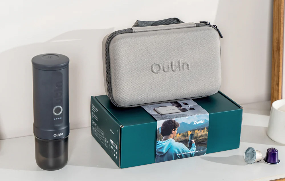 Machine à café portable Outin Nano 7500 mAh (gris) + étui de protection