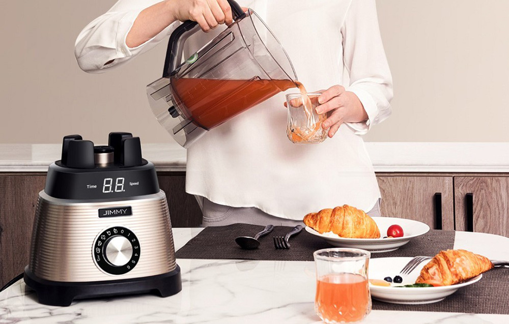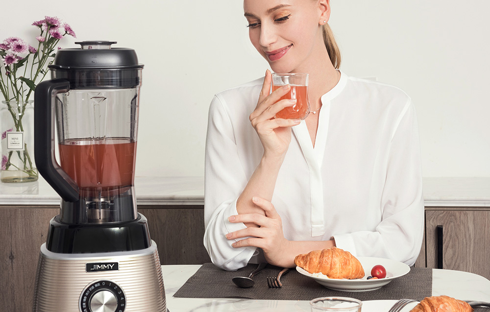 Fini les morceaux de nourriture non mélangés dans vos cocktails. Le blender de la marque JIMMY dispose d’une puissance allant jusqu’à 1 000W et de vitesses atteignant 25 000 tr/min. Il se distingue également par son design amélioré et sa lame quadruple, permettant de mixer tous les ingrédients de manière parfaite et homogène. L’appareil gère même les morceaux de glace avec aisance ! Il extrait également plus de nutriments. Tout cela permet d’obtenir des smoothies, purées et autres préparations lisses, délicieuses et saines.