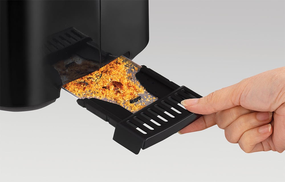 Un tiroir à miettes amovible facilite le nettoyage du grille-pain, et un compartiment de rangement pour le cordon permet de ranger l’appareil facilement, ce qui aide à garder votre plan de travail propre et esthétique.