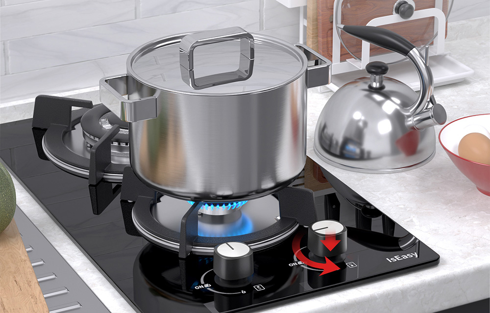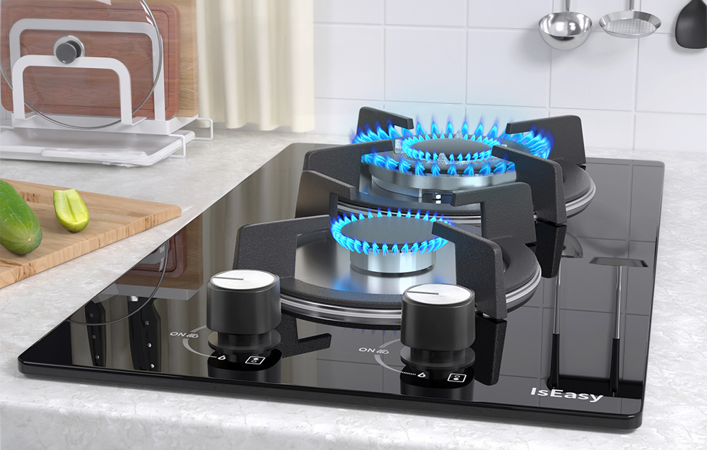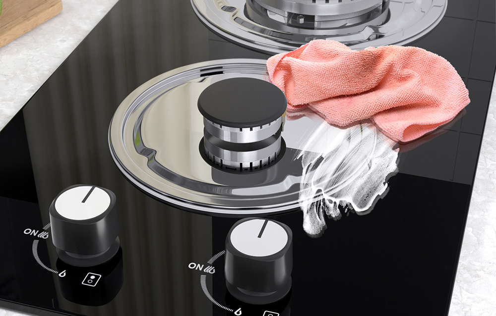 Les boutons de contrôle pratiques offrent un réglage précis de la taille de la flamme, et leur conception antidérapante garantit durabilité et commodité. De plus, la surface en verre de la plaque rend le nettoyage rapide et facile : il suffit de l’essuyer avec un chiffon humide pour enlever les salissures et retrouver son éclat.