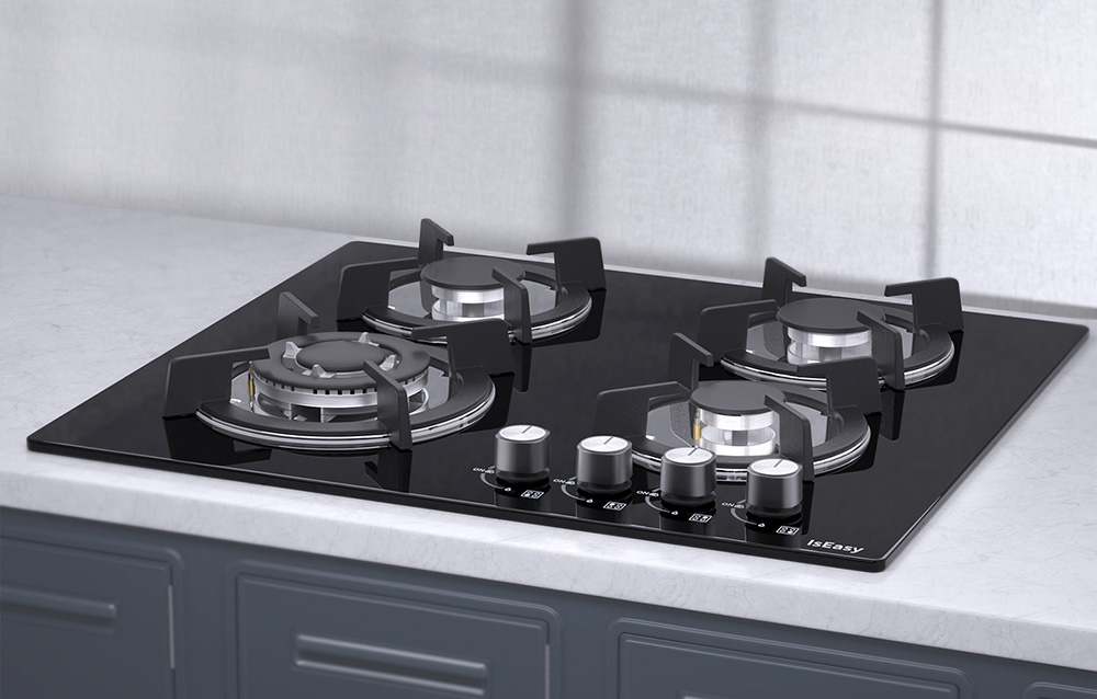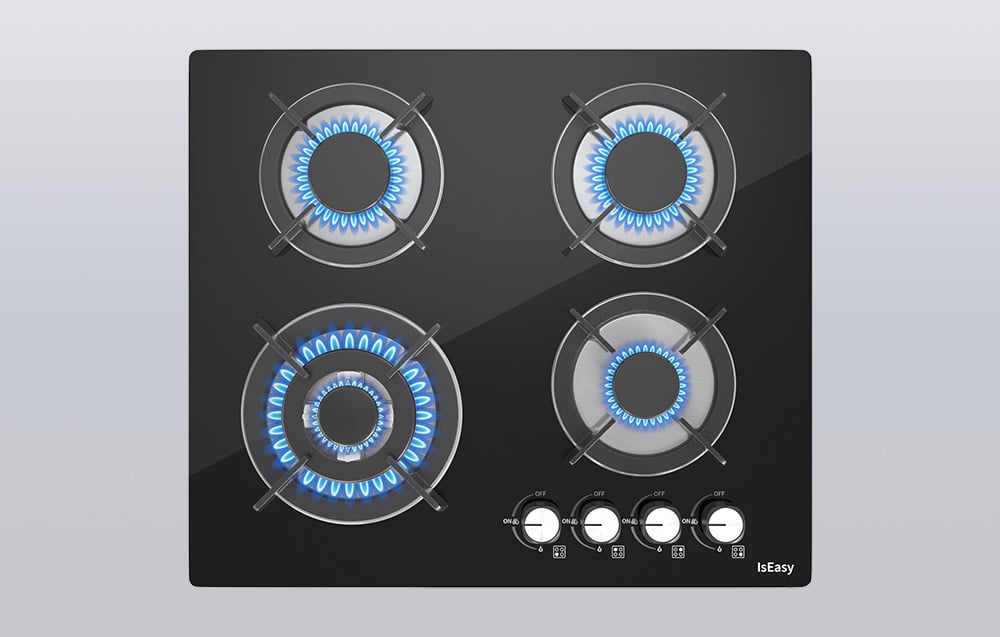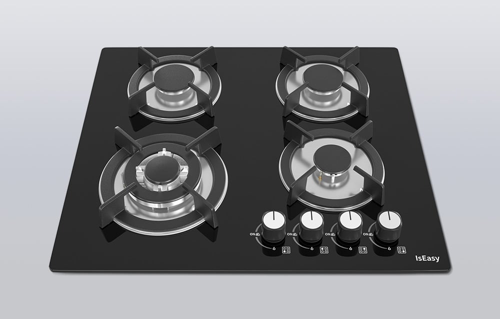 Plaque de cuisson à gaz IsEasy MGBG-604B avec panneau en verre.