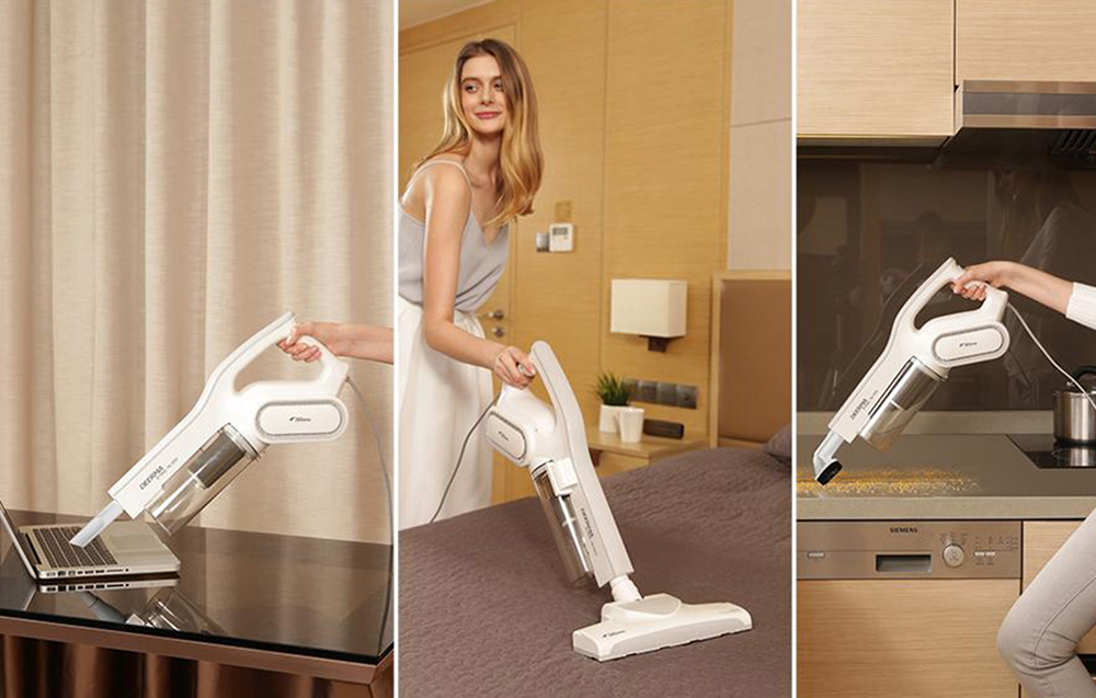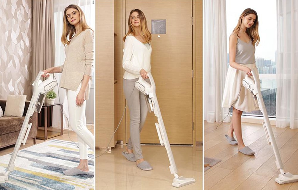 Vous pouvez facilement adapter l’aspirateur léger Deerma DX 700 à vos besoins. Utilisez-le comme un petit aspirateur à main – par exemple, pour nettoyer les meubles ou les tissus d’ameublement, ou comme un aspirateur vertical classique pour les sols. Son poids léger de seulement 2200 g facilite son déplacement entre les pièces ou son élévation pour collecter la poussière et les toiles d’araignée au plafond. Avec le câble pratique de 4,5 mètres, vous pouvez atteindre presque tous les recoins de votre maison. Bientôt, il n’y aura plus un seul coin poussiéreux chez vous !