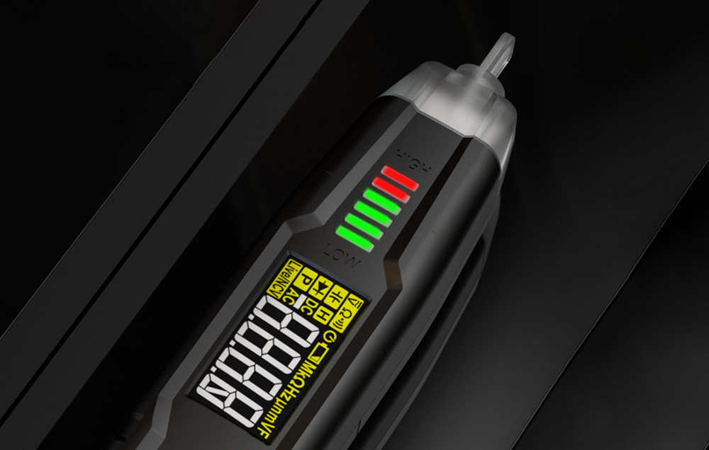 L’instrument présente un design compact et facile à utiliser. Il est équipé de boutons-poussoirs qui vous permettront d’activer facilement l’option de mesure souhaitée. Le multimètre offre également une fonction de stockage de données et une lampe de poche, facilitant le travail dans des zones mal éclairées. Le HT122 vous avertira également s’il est proche d’une tension active grâce à un bip spécifique et à une couleur LED.