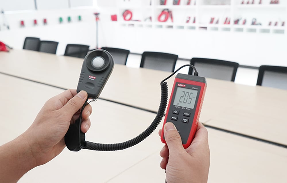 Le UT383S peut mesurer l’intensité lumineuse de 0 à 199 900 Lux avec un temps d’échantillonnage de seulement 0,5 seconde. Le changement de plage automatique et l’option de sélection d’unité (Lux/Fc) permettent une adaptation facile à différents environnements de travail. La grande précision des mesures rend l’appareil idéal pour une utilisation en laboratoire et sur le terrain.