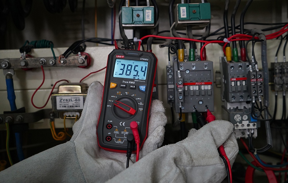 Le multimètre respecte les normes de sécurité CAT II 1000V et CAT III 600V, et son boîtier robuste améliore la résistance aux chutes et aux impacts. Le UT60EU dispose également d’une fonction NCV (détection de tension sans contact), d’un test de diode et de continuité avec indication sonore et visuelle, d’une fonction de mesure relative (REL), d’un stockage de données (Data Hold) et d’une mise hors tension automatique après 15 minutes d’inactivité. Un indicateur LED tricolore montre l’état de l’alimentation et les résultats des tests.