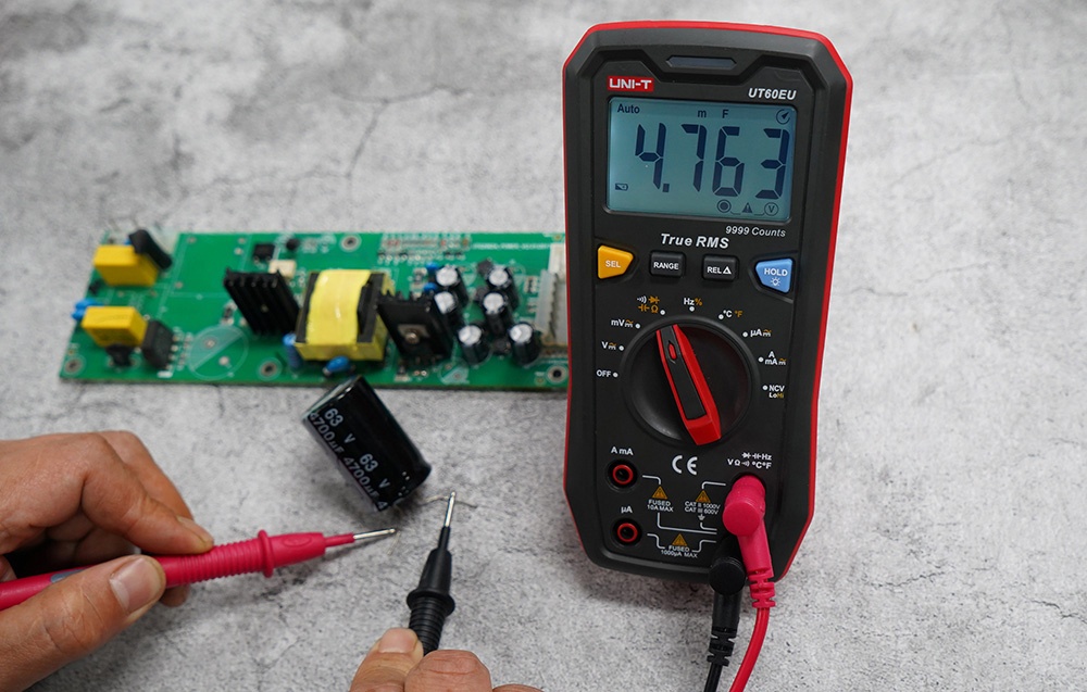 Le UT60EU prend en charge les mesures de tension AC et DC jusqu’à 1000 V, de courant jusqu’à 10 A et de résistance jusqu’à 99,99 MΩ. Grâce à la fonction True RMS, l’appareil fournit des lectures précises pour les systèmes de puissance pulsée ou les onduleurs. La mesure de la capacité des condensateurs va jusqu’à 99,99 mF, et la fréquence peut être mesurée de 99,99 Hz à 9,999 MHz. Le multimètre propose également des mesures de cycle de service et de température de -40°C à 1000°C.