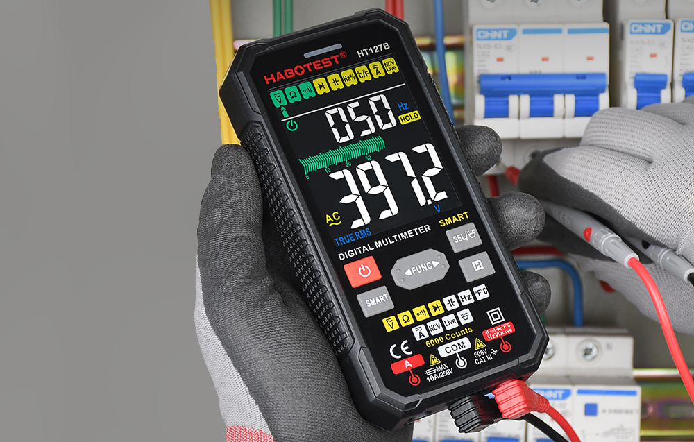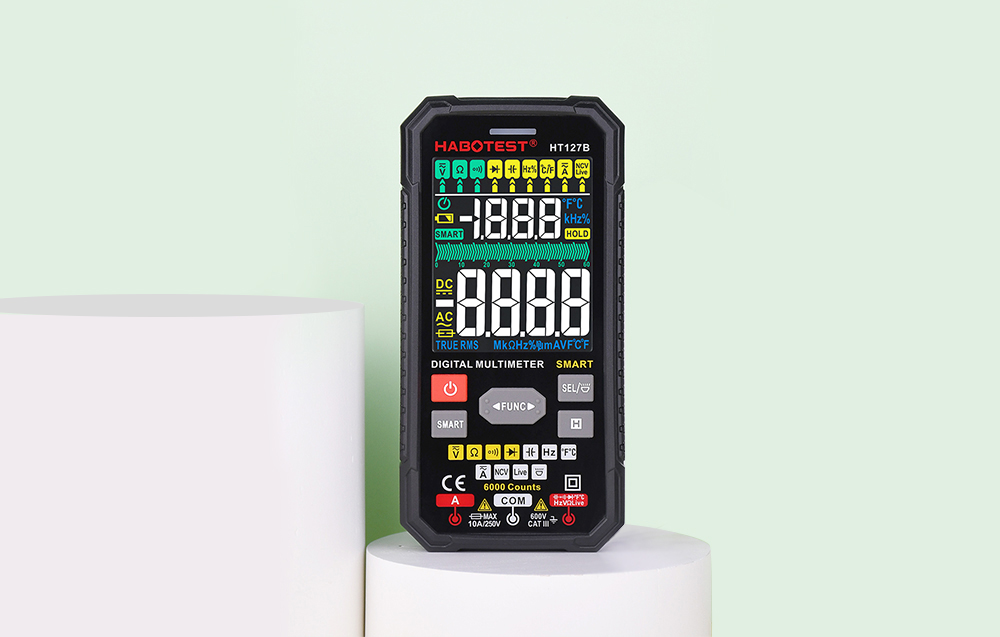 Le multimètre numérique Habotest HT127B est un appareil multifonction qui s’avère utile lors de travaux électriques. Il permet de mesurer la tension, la résistance, la capacité et bien d’autres paramètres. Son écran facile à lire vous permet de consulter les résultats de mesure en toute simplicité. De plus, il est équipé d’une lampe de poche et de boutons pratiques.