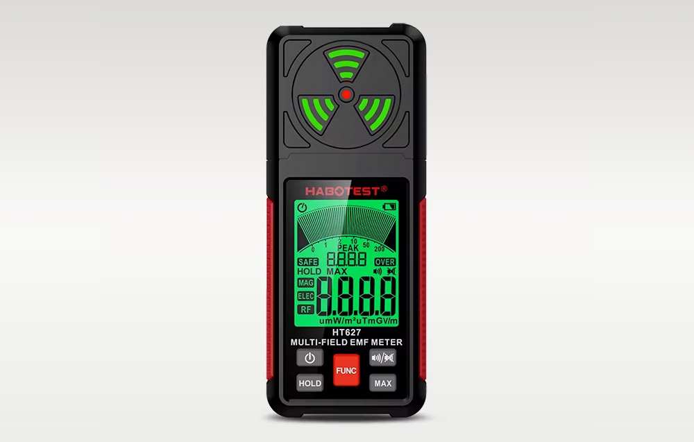 Le HT627 peut mesurer à la fois les champs électriques et magnétiques, permettant une analyse complète de l’impact des radiations sur l’environnement. Sa large plage de mesure (jusqu’à 2 000 V/m pour le champ électrique et 200 μT pour le champ magnétique) rend l’appareil adapté aux évaluations de sécurité dans les lieux de travail, les maisons ou à proximité des appareils électroniques.