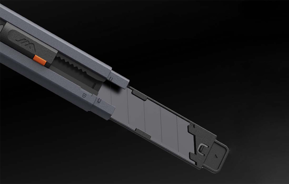 En retirant le bouchon de la partie inférieure, vous accédez à des lames de rechange. Le bouchon vous aide également à casser efficacement la pointe du couteau, même avec des gants de travail, minimisant ainsi le risque de blessure.