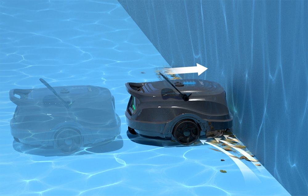 Le robot est équipé de la technologie WINS Edge Cleaning, qui lui permet de s’arrêter quelques secondes après avoir touché le mur de la piscine pour nettoyer les bords plus en profondeur. Cela élimine la saleté des zones souvent négligées par les nettoyeurs standards.