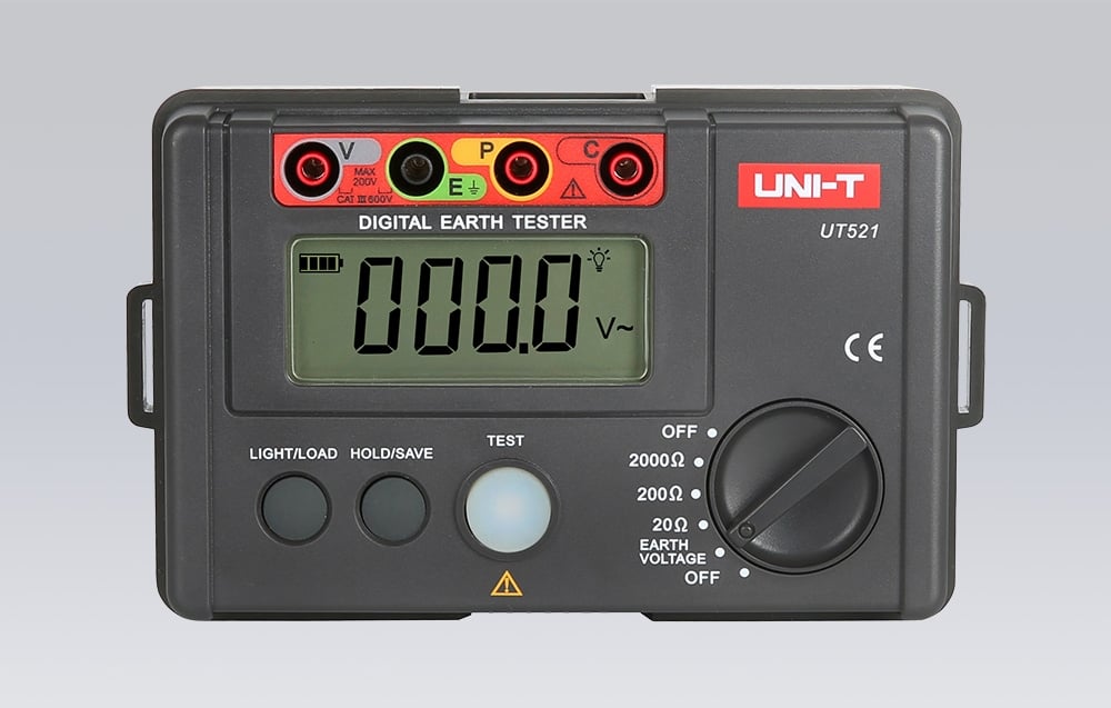 Le testeur de terre UNI-T UT521 est un appareil fiable conçu pour mesurer avec précision la résistance de mise à la terre dans les systèmes électriques, les installations de protection contre la foudre et les systèmes de mise à la terre de tous types d’équipements électriques. Il permet des mesures simples à 2 fils ainsi que des mesures précises à 3 fils. Le UT521 propose une sélection manuelle de plage, une fonction de maintien des données, un indicateur de batterie faible et une mise hors tension automatique. L’écran LCD rétroéclairé garantit une lisibilité optimale des résultats dans toutes les conditions. L’appareil dispose également d’un affichage complet d’icônes, d’une double isolation de protection, ainsi que d’indications de contact faible et de surcharge (« OL »). De plus, le testeur est certifié CE et UKCA, confirmant sa haute qualité et sa sécurité.