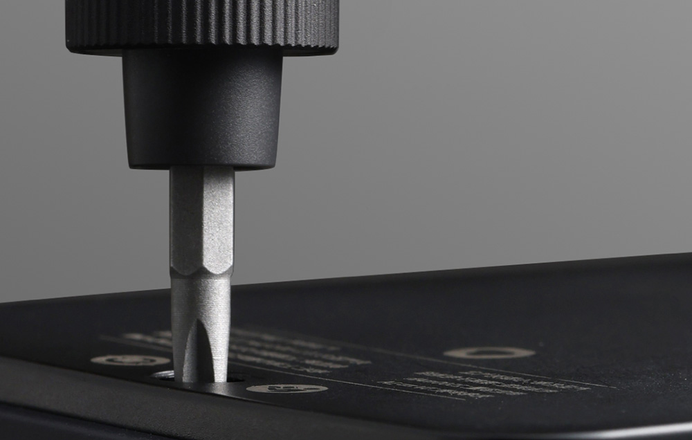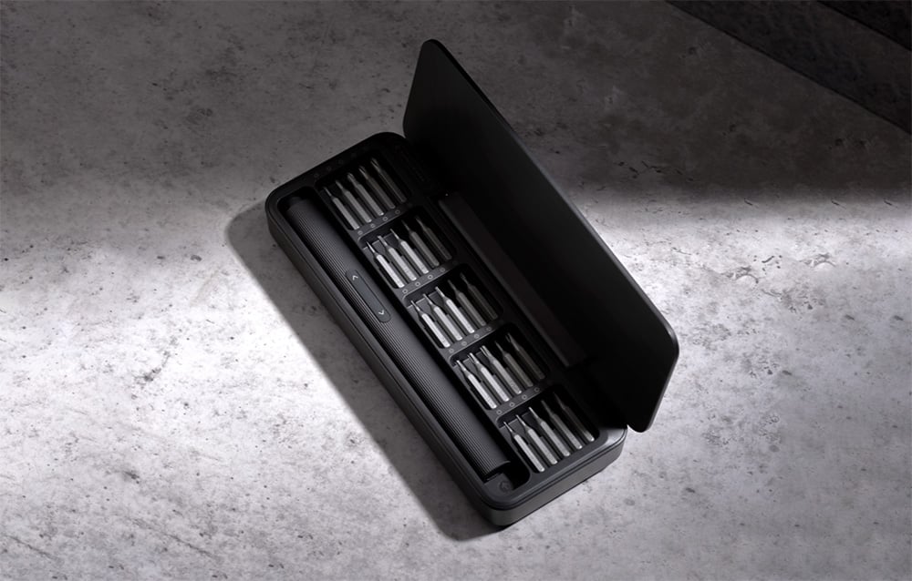 Avec un poids léger d’environ 60 grammes et une surface antidérapante, le tournevis s’adapte parfaitement à la main et offre une prise stable. Le boîtier inclus est fabriqué à partir de matériaux durables tels que l’alliage d’aluminium, le PC et l’ABS, et dispose d’une charnière à ressort qui facilite l’ouverture et la fermeture. Le boîtier s’ouvre jusqu’à 115°, ce qui rend très pratique de sortir et de ranger les outils.