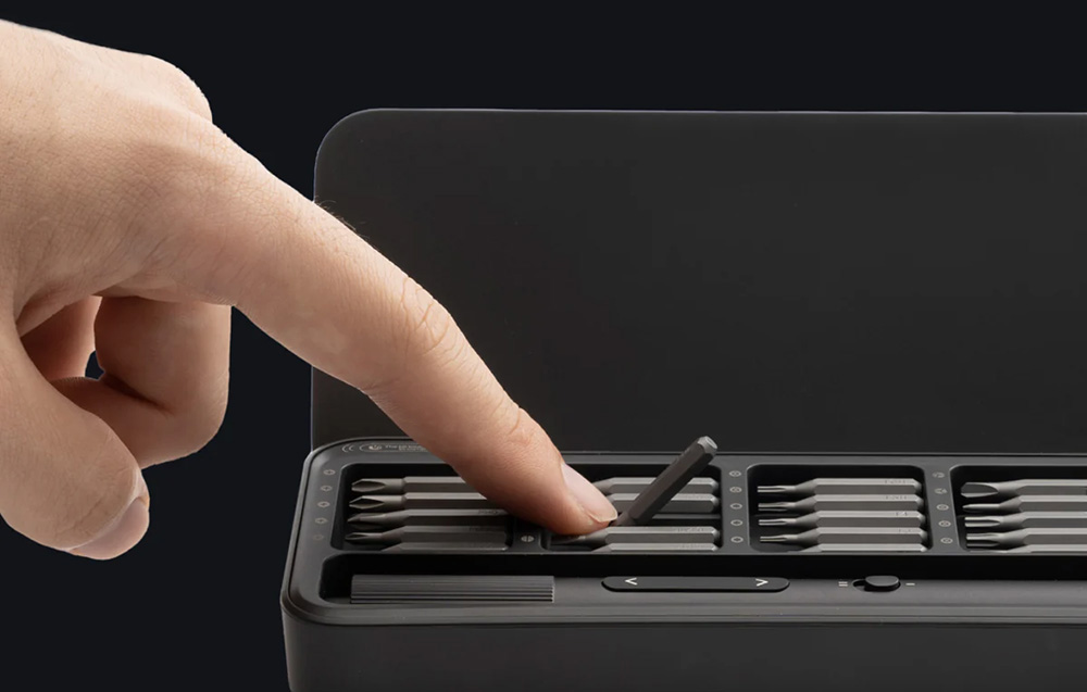 | Types d’embouts : | Phoenix : PH000/PH00/PH0/PH1/PH2 ; Hexagonal : H0.7/H0.9/H1.5/H2.0 ; Plat : SL1.5/SL2.0 ; Torx : T2/T3/T4 ; Torx creux : T5H/T6H/T8H/T9H/T10H ; Étoile à cinq branches : P2/P5 ; Triangle : TW1 ; Embout triangulaire : 2.3 ; Y : Y0.6 ; U : U2.6 ; Polygone : W1.5 |