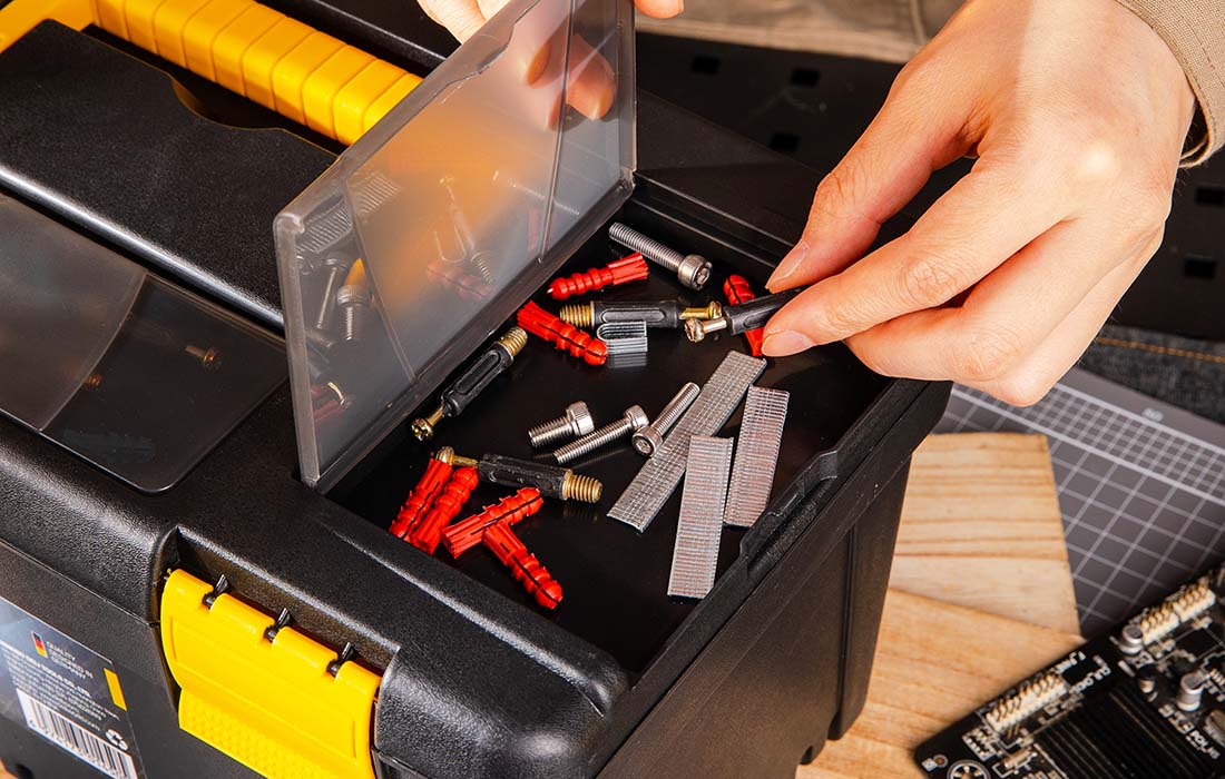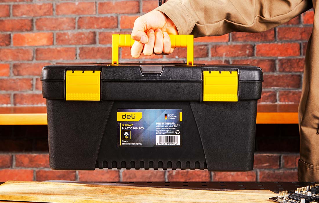 La boîte à outils est un indispensable pour tout bricoleur, c’est pourquoi les spécialistes de Deli Tools ont conçu le modèle EDL432417. Avec des dimensions de 380x200x180 mm et des compartiments pratiques, elle peut contenir une variété de clés, clous, vis, etc. Fabriquée en plastique, elle dispose d’une poignée sur le dessus pour un transport confortable. De plus, des patins antidérapants lui confèrent une meilleure stabilité.